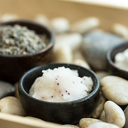 Mineral salt with essential oils used to remove dead skin cells, which leaves skin feeling soft and supple.